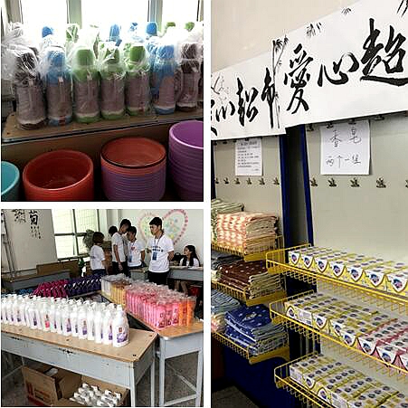 截止5月31日,本学期“爱心超市”共向1646名学生发放物品总计3470件,其中水壶601个、雨伞542把、水杯270个、毛巾385条、脸盆442个、衣架578组、洗发液154个、沐浴液145个、香皂260块、书籍71本、短袖22件。
