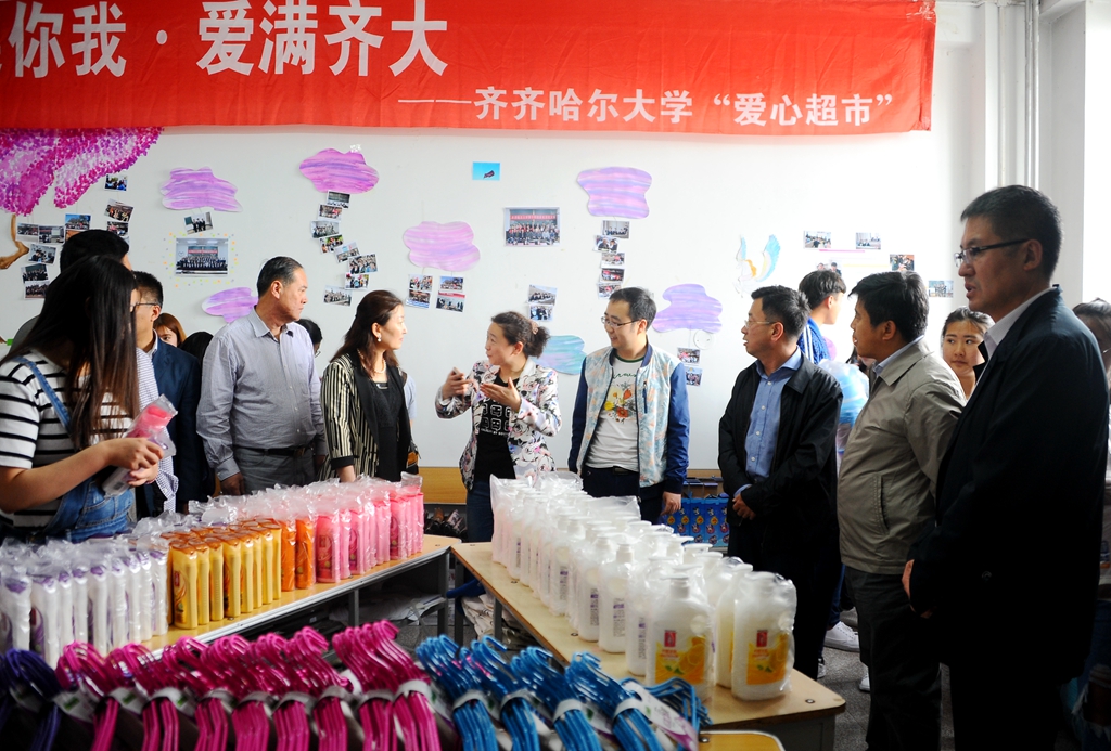 齐齐哈尔大学“爱心超市”是一种“以捐助为主渠道,以超市运作为载体”的长期公益性活动,爱心超市由校勤工助学服务中心负责日常管理。通过爱心超市将全校师生和社会各界爱心人士捐赠的衣物及文体、生活用品免费发放给我校家庭经济困难学生,缓解这些学生的经济压力。自2013年学校成立“爱心超市”以来,它已经陪伴同学们走到了第五个年头,受惠的同学数以万计,“爱心超市”的知名度也越来越高,得到社会各界和全校师生的广泛赞誉。