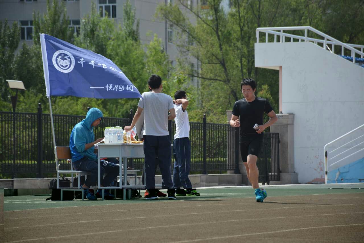 齐齐哈尔大学悦跑团成立初期就已经有会员150余人,社团于2017年6月4日上午在西区体育场组织了一场温馨的以“我运动、我健康、我快乐”为主题的快乐奔跑活动。有30余名师生参加了这次活动,活动项目设置了半程马拉松、10公里和5公里欢乐跑三个项目,悦跑团组织者科学地选择场地并统一组织准备活动,提供了充足的途中补给,保证了参赛学生科学奔跑。