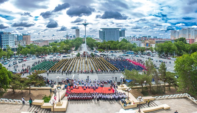 3500人共同演奏了《我和你》《欢乐的达斡尔》《我爱你塞北的雪》三首曲目,或舒缓温情、或激昂欢快、或优美深情,拉开了丁笛演奏的序幕;其场面壮观,令人震撼。