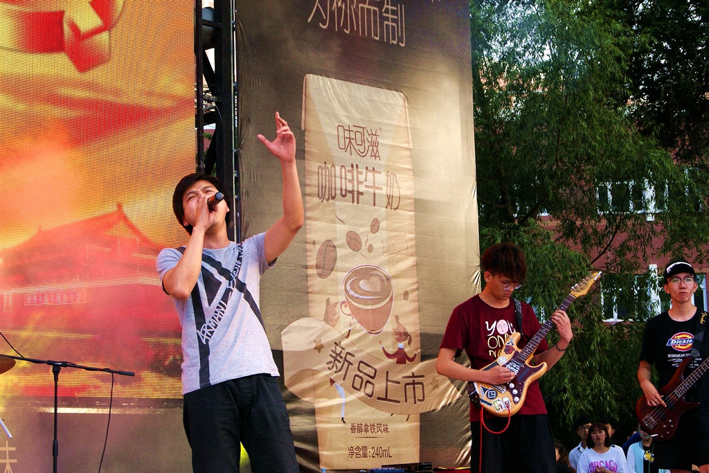 在这样盛大的校园音乐节上,怎么可能缺少帅气的小哥哥?由七个热血少年组成的火柴乐队在观众们的欢呼声中强势登场。率先出场的是主唱张思远带来的《潇洒走一回》,他笑眯眯地走上舞台,随性的拿起话筒,充满着摇滚气息声音如暴风一样袭入观众的耳朵,让人入迷,久久不能忘怀。紧接着李方良演唱的《爱不爱我》更是让现场高潮迭起,掌声不停,幽默有趣的台上台下互动让现场变得更有活力,带动起观众火热的心。