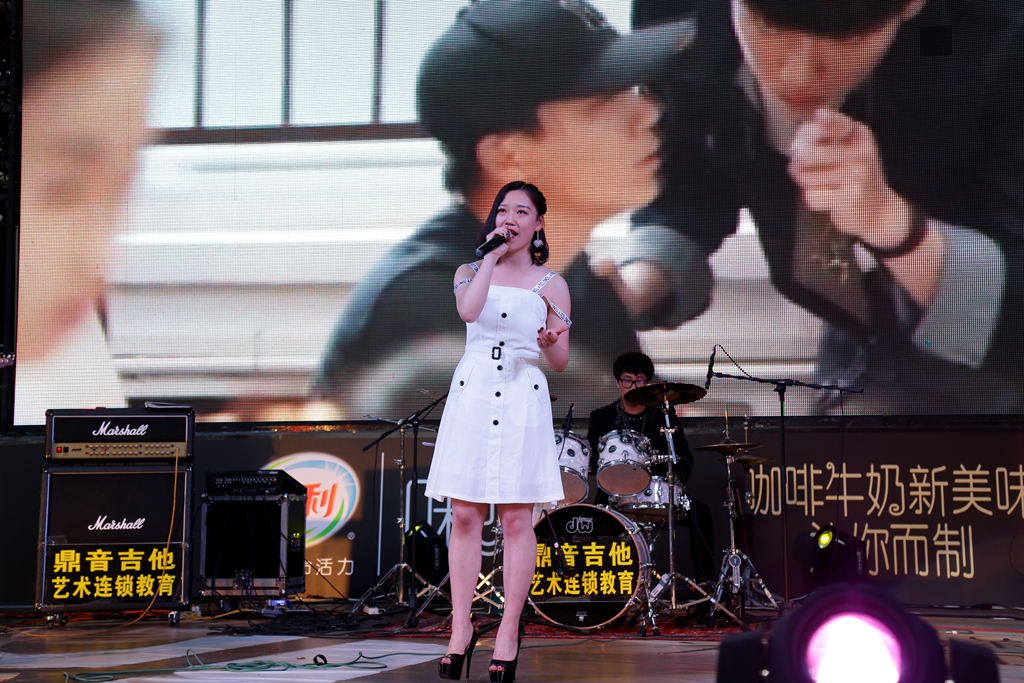 谁说音乐节总是要在摇滚经典中劲爆行走!随着强劲的鼓点响起,音乐节在我校音乐与舞蹈学院邓重博老师带来的两首红歌中拉开帷幕。“时间让多少的事卷入了历史的长河,但是中华民族的英雄们,他们坚韧的精神我们永远不会忘记,他们永远是中华儿女的骄傲。”歌曲《红旗飘飘》配上铿锵有力的声音,唱醒了观众们心底的中国魂。而在观众们还沉浸在红歌意犹未尽之时,一首《追寻》更是展现了邓重博老师高音的魅力,作为原唱孙楠的最高音歌曲,在邓老师的演绎中可谓是毫不逊色,赢得了现场观众的阵阵掌声。