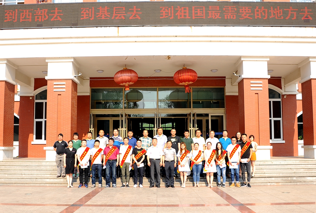 欢送仪式结束后,与会领导、老师与2017年西部计划大学生志愿者合影留念。