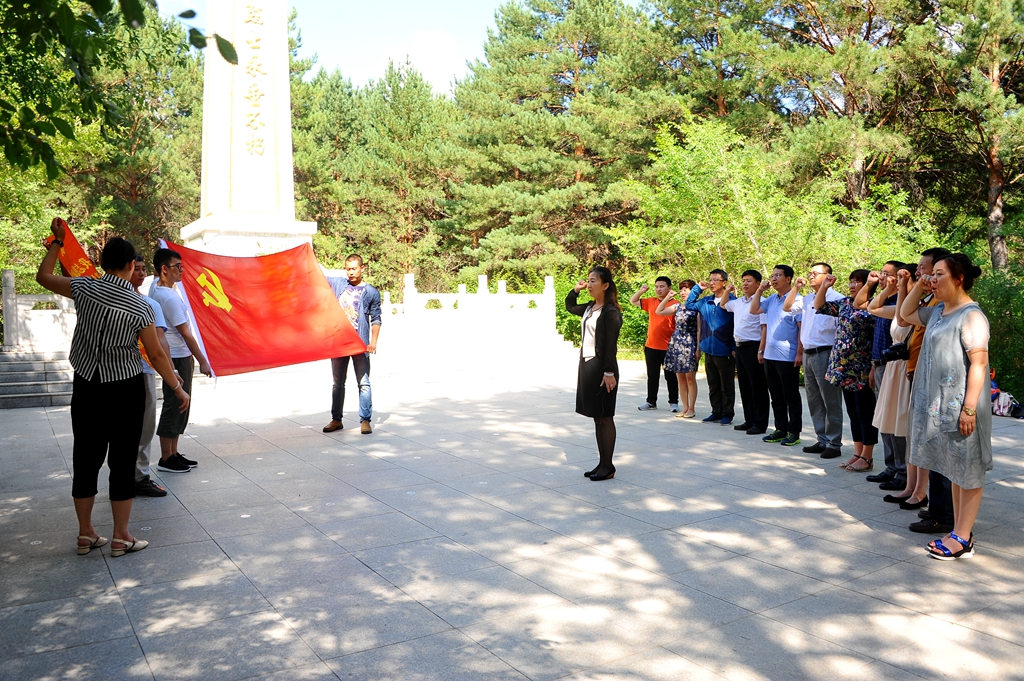 7月1日下午,全体党员参观了内蒙古自治区阿荣旗抗联英雄园、王杰广场、阿荣旗一中和新发朝鲜族乡东光村。