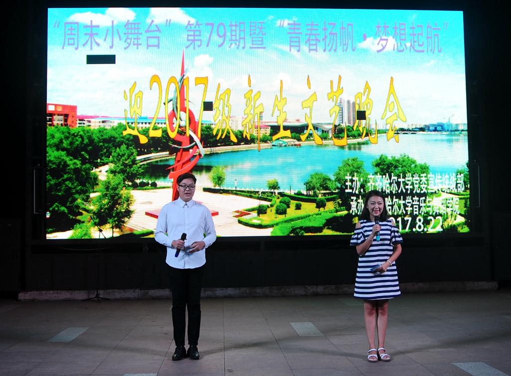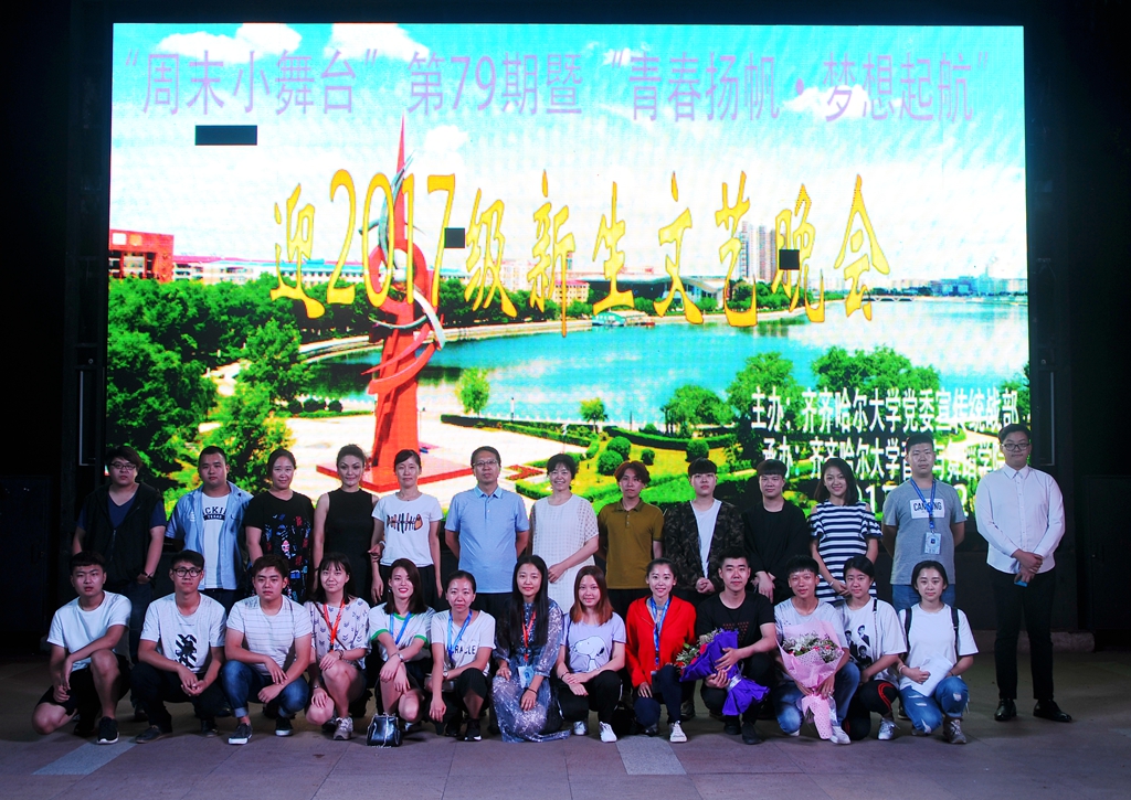 8月22日是我校新生报到的第一天,来自祖国各地的学子们满怀欣喜地走进美丽的齐大校园。为迎接2017级新生入学,丰富校园文化生活,充分展现多彩的校园文化,18:30在东区三致广场,“周末小舞台”第79期暨“青春扬帆▪梦想起航”迎2017级新生文艺晚会精彩上演。此次活动由学校党委宣传统战部主办、音乐与舞蹈学院承办。音乐与舞蹈学院党委书记蔡云凌,院长孙相根,校党委宣传统战部副部长何强,音乐与舞蹈学院副书记、副院长任华,团委副书记、学工办副主任张欣及部分新生和新生家长共同观看了本次演出。