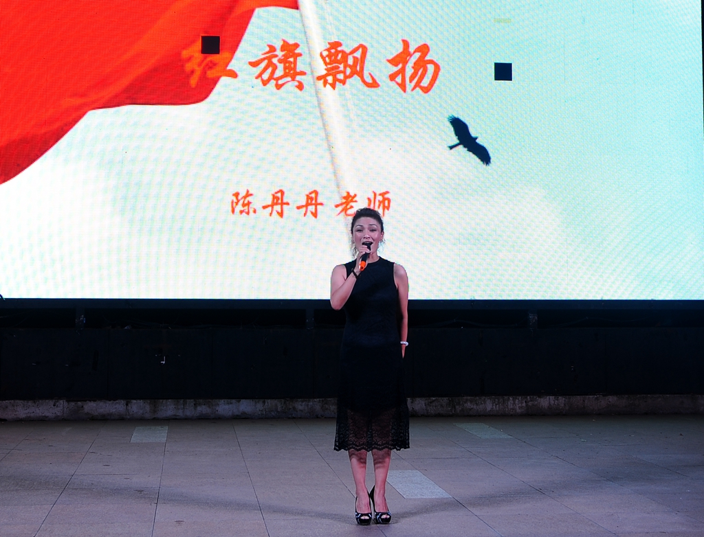 最后,晚会在陈丹丹老师《红旗飘扬》的歌声中圆满结束。陈丹丹说:“选择演唱《红旗飘扬》是因为我认为这首歌是非常励志的一首歌曲,这首歌曲述说着军人的故事,也希望大一的新生们今后能为祖国贡献自己的一份力量。”