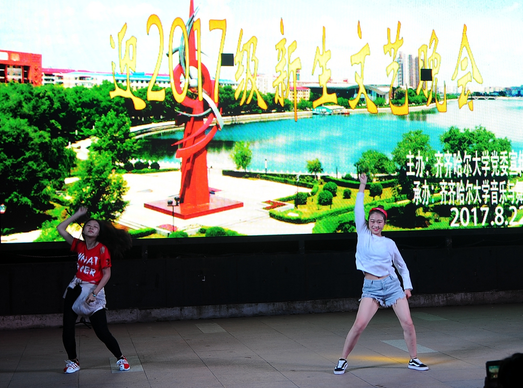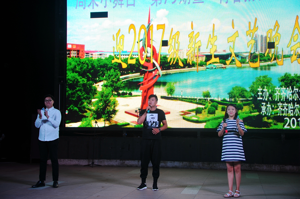 罗猛和范棋森带来的相声《我爱摇滚乐》,以其相声形式的摇滚乐,独特新创意打破了人们原先对于相声的定义,他们的精彩表演也赢得了在场师生的喝彩。一曲《凉凉》耳熟能详,在刘留吹奏笛声的配合下,刘书衡同学却用男女声转换的方式完美演绎,女声部分声音清澈动听,男声部分低沉雄厚,让人们耳目一新。2016级舞蹈专业马家慧、李梓童、唐慧如等带来了《彩云之南》,舞蹈轻盈优美,婀娜多姿,美轮美奂。两位毕业生颜佳豪和李龙生带来的原创歌曲《大学你好》,衷心祝贺2017级新生进入美丽的齐齐哈尔大学,希望学弟学妹们拥有不一样的四年。