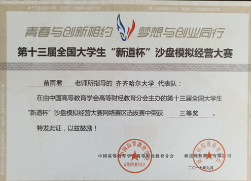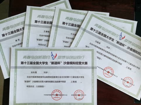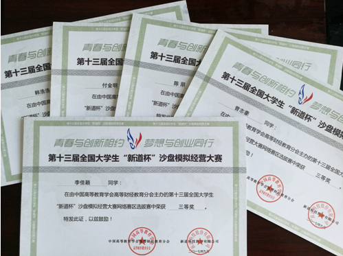 近日,由中国高等教育学会高等财经教育分会主办的第十三届全国大学生“新道杯”沙盘模拟经营大赛网络赛区选拔赛,经过3个多月的网络比赛落下帷幕,我校经济与管理学院代表队在比赛中荣获三等奖。