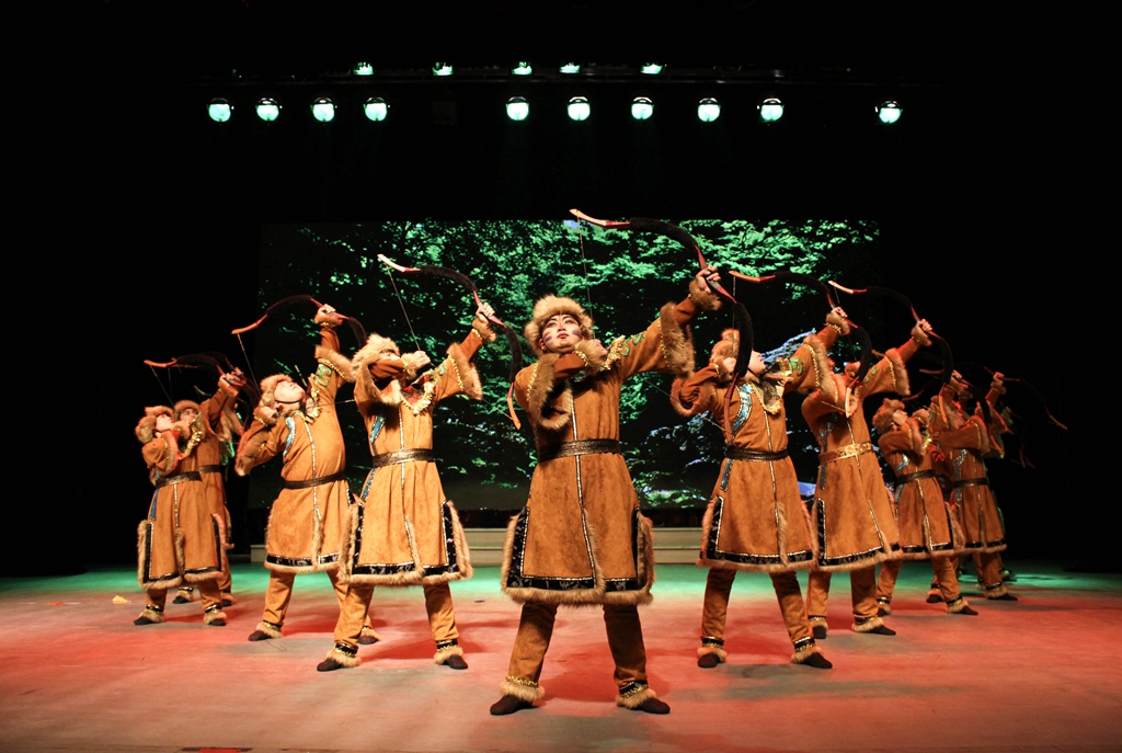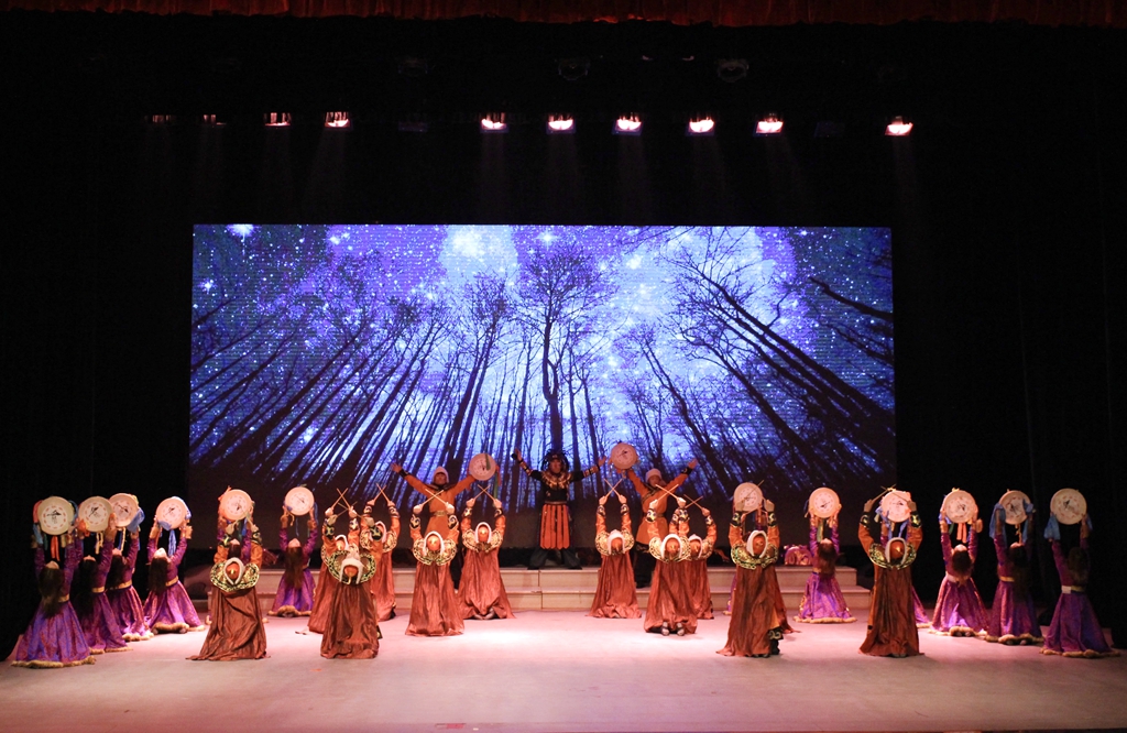 鄂温克族,一个住在大山林中的狩猎民族,一个勇猛且忠诚的民族。由刘昊、宿宁、徐磊、刘凯迪等人带来的鄂温克群舞《通灵之鼓》为本次演出完美开场。伴随着亢奋有力的鼓声,翩若惊鸿的少女举着形状奇特、宛如神创的鹿角,身着奇服的萨满兴奋的舞动,与少女们婀娜的身姿融为一体,完美的诠释了鄂温克族与自然友好共处的真谛。