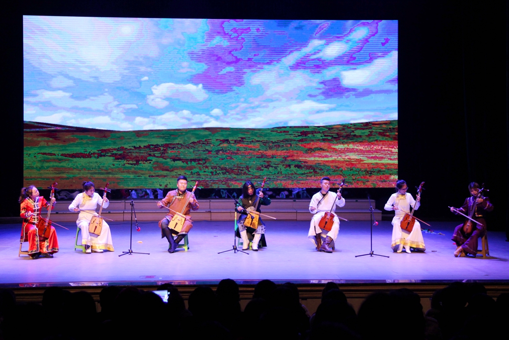 蒙古族世世代代在草原上繁衍生息,创造出了特色鲜明的民族文化。青山、王娜、银雪等人共同演奏了马头琴乐曲《蒙古骏马》和《英雄牧马人》。马头琴是适合演奏蒙古古代长调的最好的乐器,悠扬的琴声沁人心脾,观众们好似置身于广阔无垠的大草原,带着香草和牛奶气息的微风拂过脸庞,令人流连忘返。