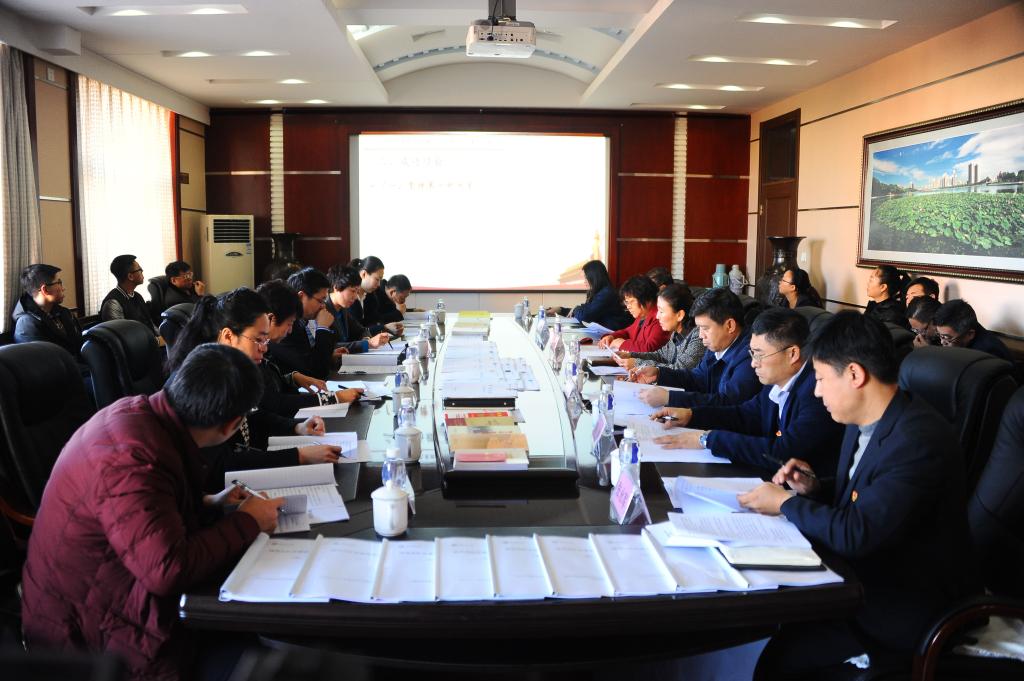 省教育厅高校党委理论学习中心组暨辅导员队伍建设情况调研组成员认真听取了汇报,王福兴在汇报会上就此次调研的目的、工作方式等进行了说明。对我校理论学习中心组暨辅导员队伍建设情况表示肯定,对我校关于辅导员职称评定及学历深造方面学校给予政策支持表示赞许,希望继续加强党委理论学习中心组学习和辅导员队伍建设。