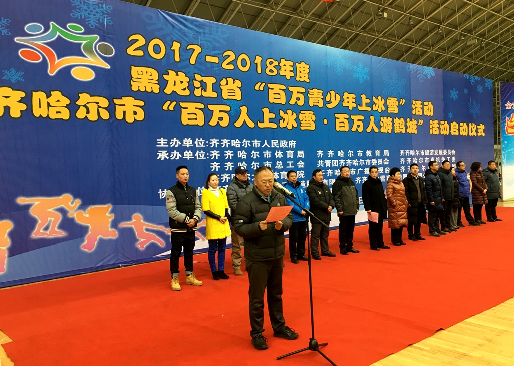 12月3日上午,2017—2018年度黑龙江省“百万青少年上冰雪”活动暨齐齐哈尔市“百万人上冰雪百万人游鹤城”活动启动仪式在市体育运动管理中心速滑馆举行,我校体育学院院长姚大为出席开幕式。