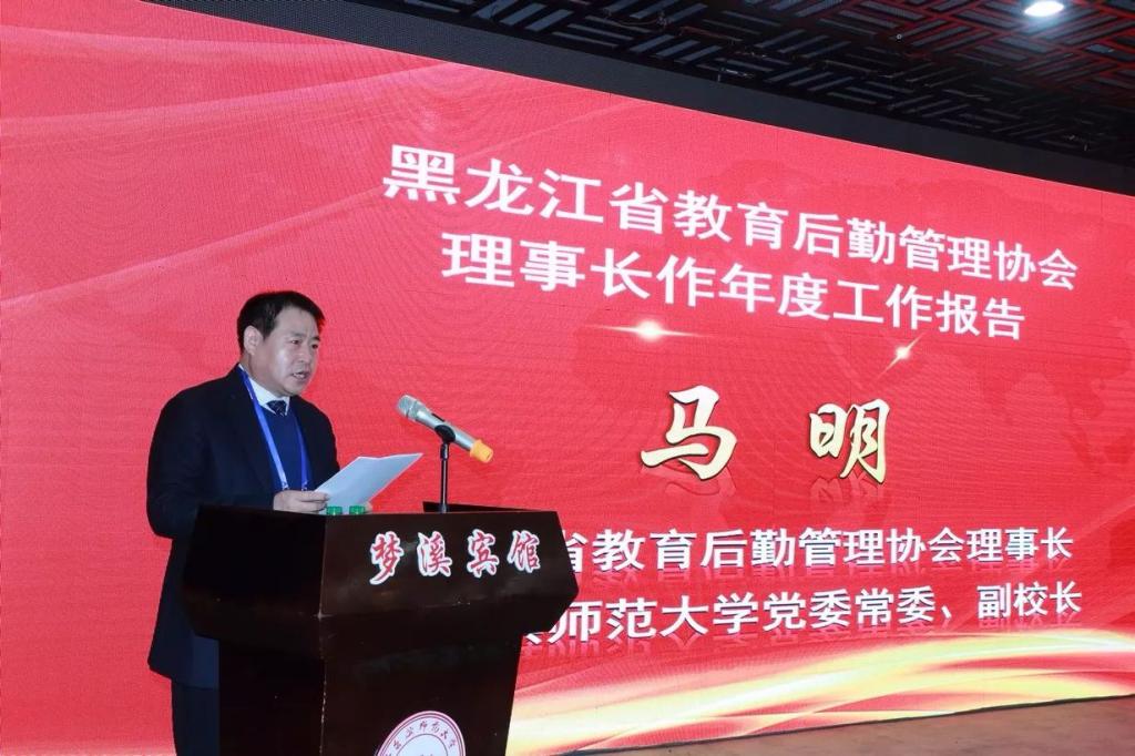 省教育后勤管理协会理事长、哈尔滨师范大学党委常委、副校长马明向全体与会代表作了第三届理事会年度工作报告,回顾总结了协会在自身建设、规范管理、信息宣传和理论研究、行业活动、校企合作等方面的工作成果,并就2018年工作提出规划和展望。