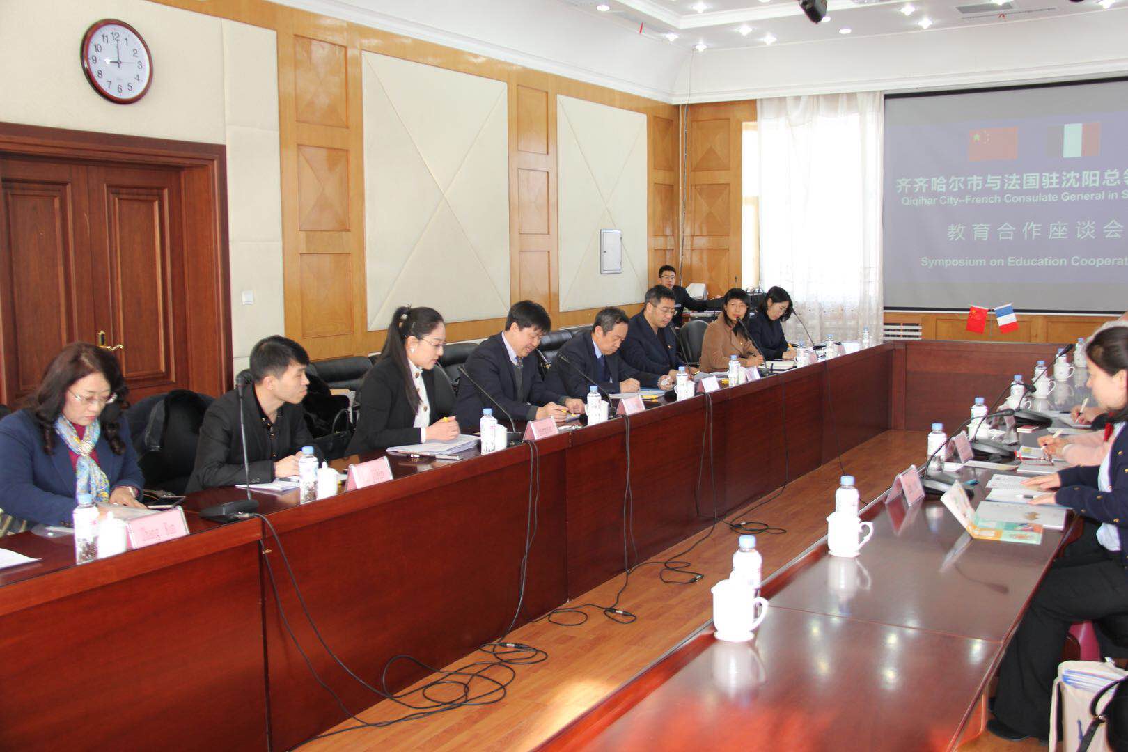 3月8日,法国驻沈阳总领事馆科技教育领事都琳(中文名)女士、高等教育署署长丁波(中文名)先生、哈尔滨办事处负责人张婧女士一行访问我市,市外事侨务办公室召开交流合作座谈会,我校副校长吕厚均出席座谈会并就与法国高校及重点中学间的校际交流进行了探讨,座谈会上播放了我校制作的文化育人专题片,引起了法国来访人员对我校的浓厚兴趣。