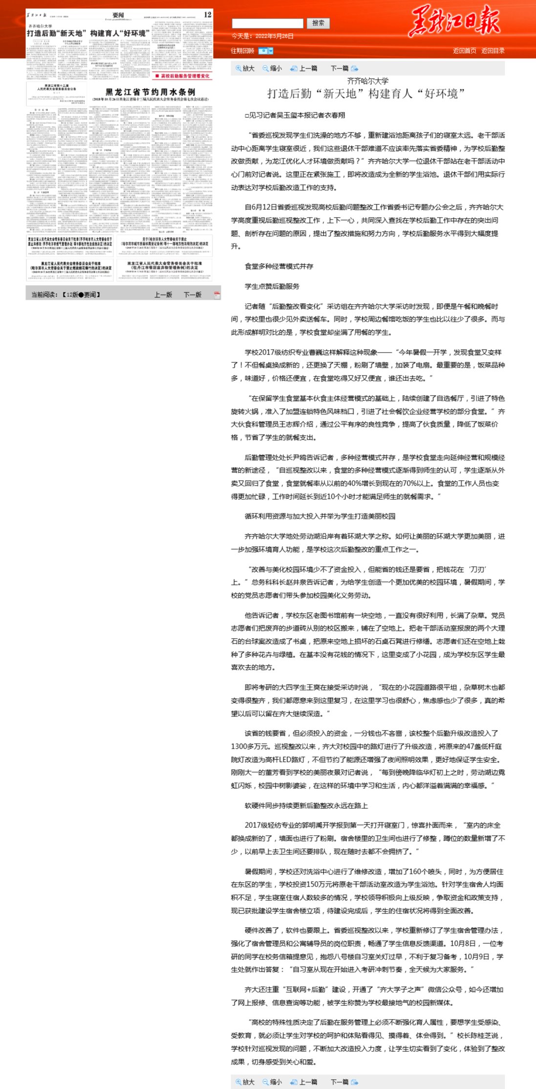【黑龙江日报】打造后勤“新天地”构建育人“好环境”