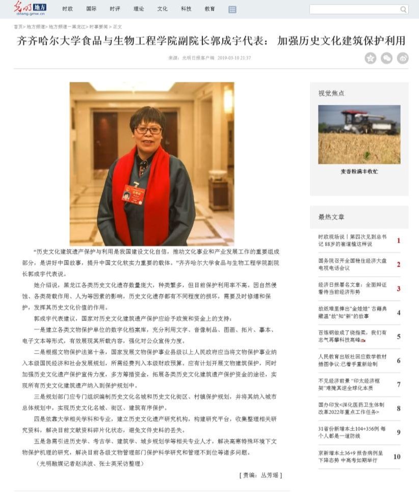 【光明网】全国人大代表郭成宇:加强历史文化建筑保护利用