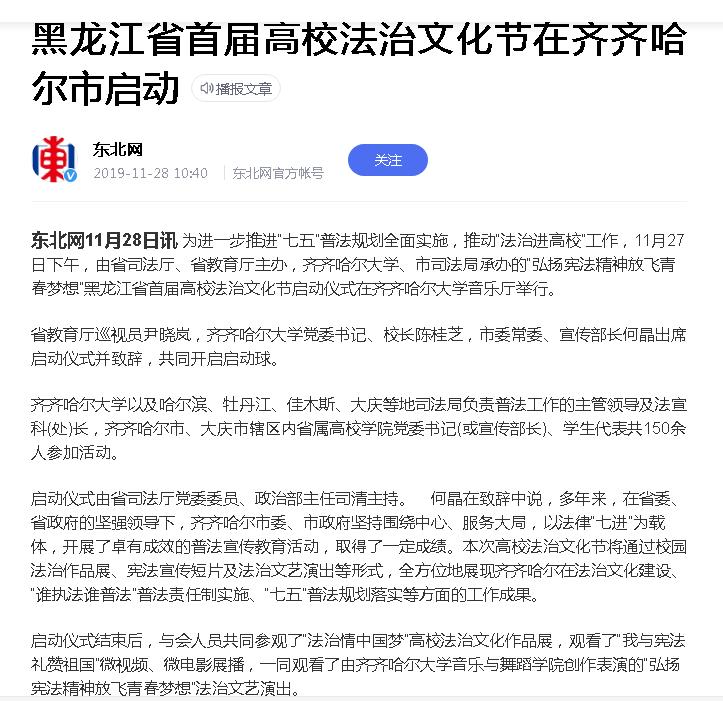 【搜狐网】黑龙江省首届高校法治文化节在齐齐哈尔市启动