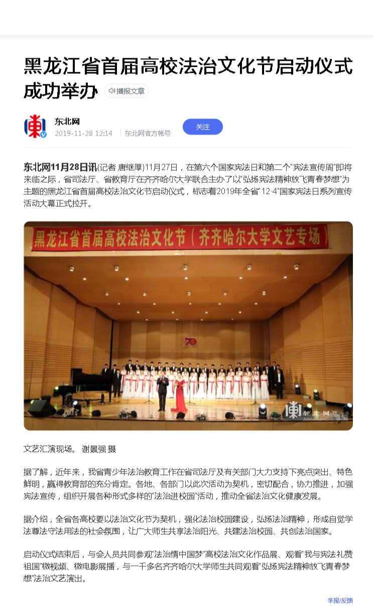 【东北网】黑龙江省首届高校法治文化节在齐齐哈尔市启动