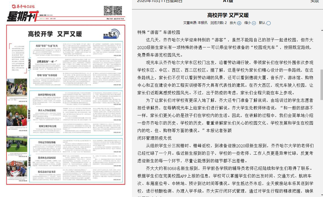 上一条:【齐齐哈尔日报】齐齐哈尔大学8000余名新生入校报到