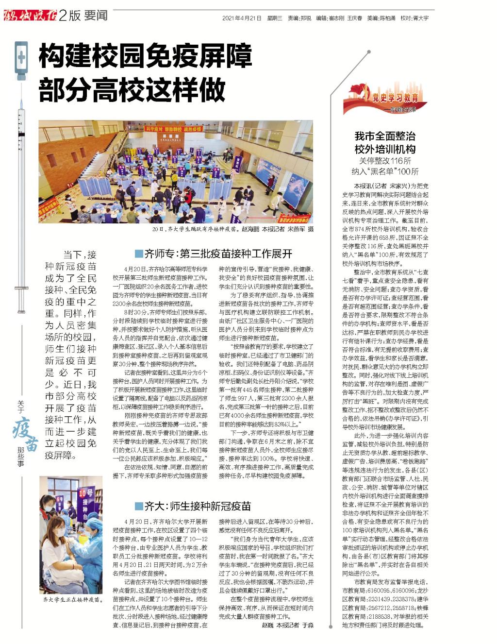 【齐齐哈尔日报】我市部分高校师生开展疫苗接种工作