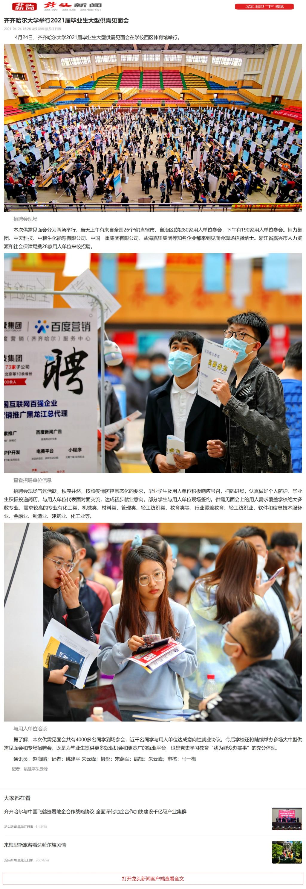 【龙头新闻·黑龙江日报】齐齐哈尔大学举行2021届毕业生大型供需见面会