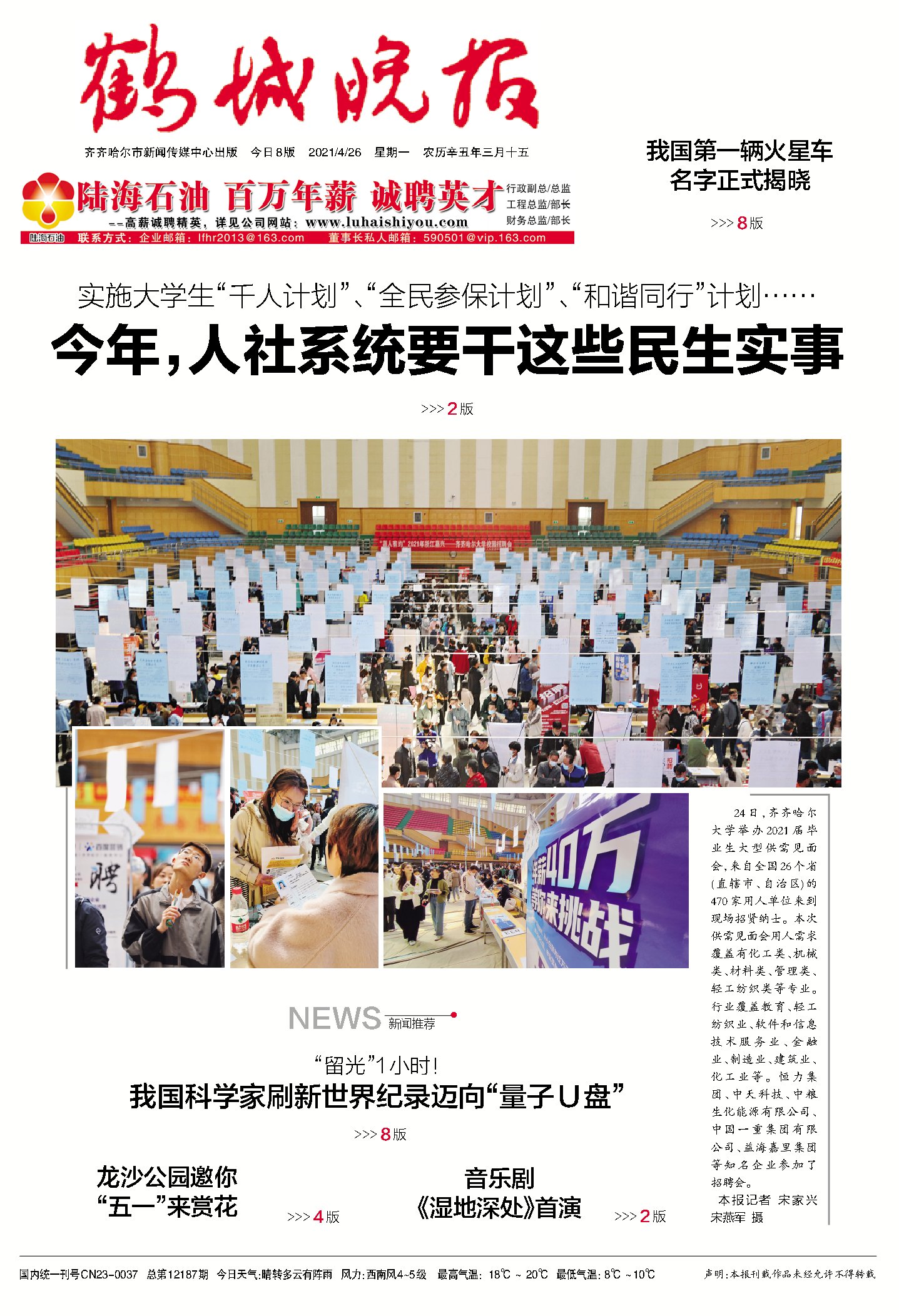 【鹤城晚报】齐齐哈尔大学举办毕业生大型供需见面会