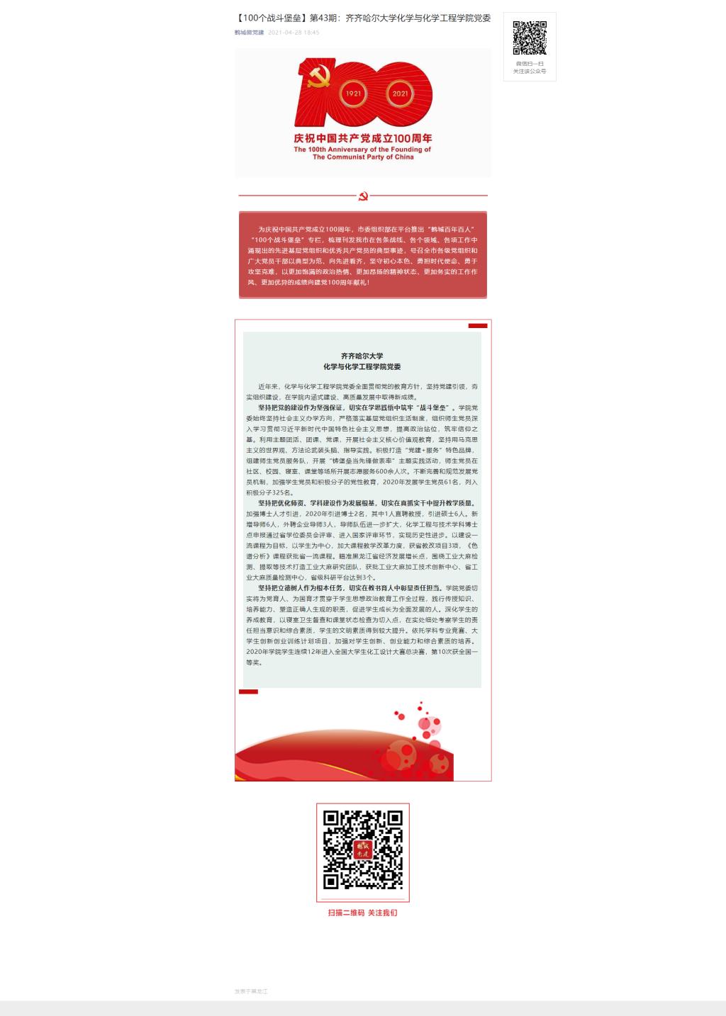 【鹤城微党建】【100个战斗堡垒】第43期:齐齐哈尔大学化学与化学工程学院党委