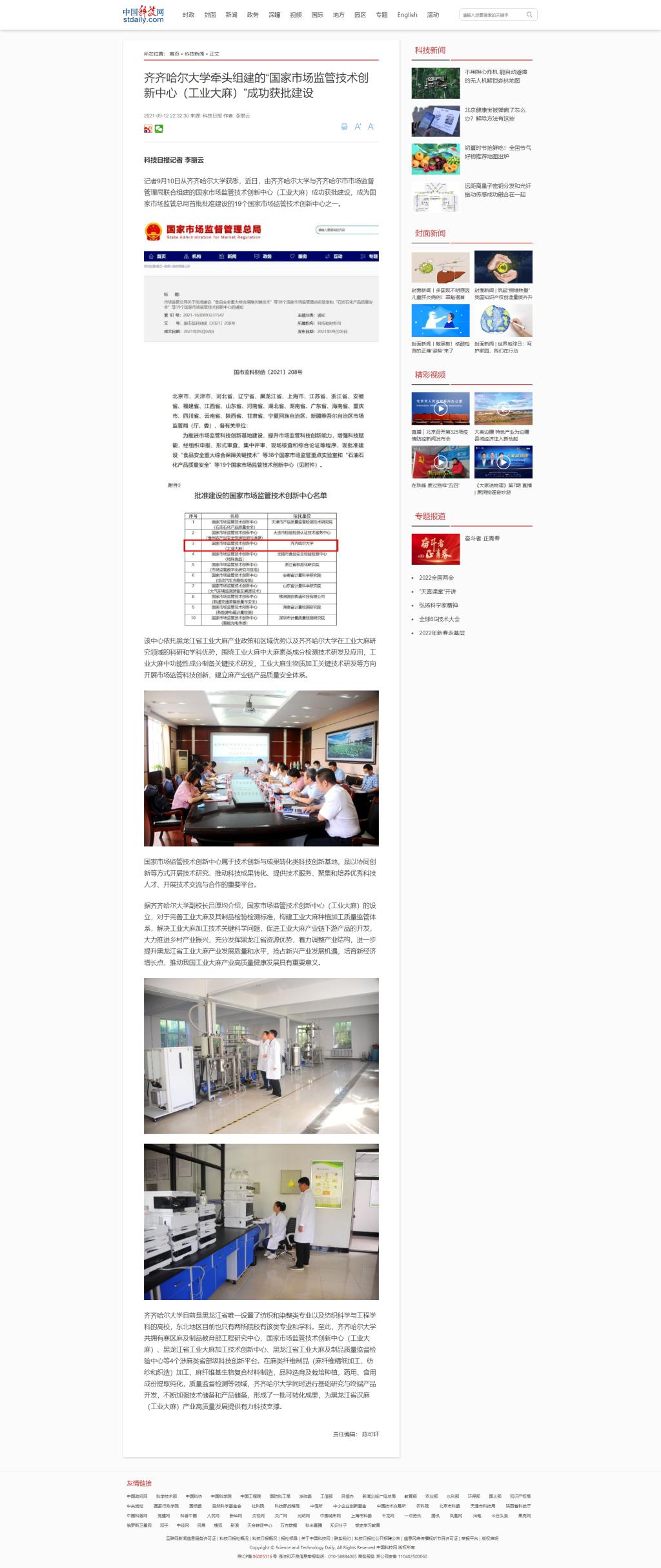 【中国科技网】齐齐哈尔大学牵头组建的“国家市场监管技术创新中心(工业大麻)”成功获批建设