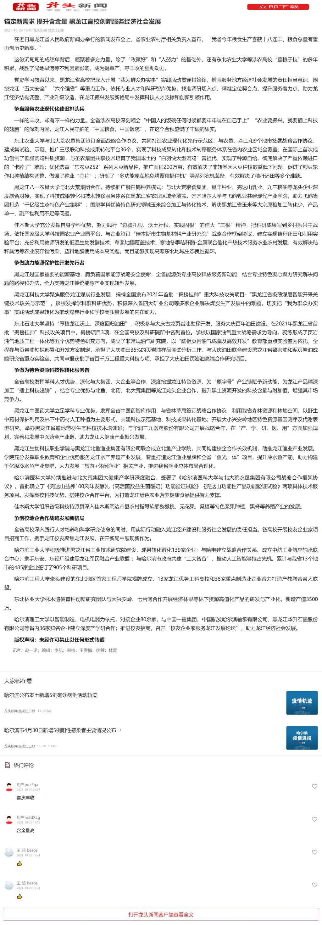 【龙头新闻】锚定新需求 提升含金量 黑龙江高校创新服务经济社会发展
