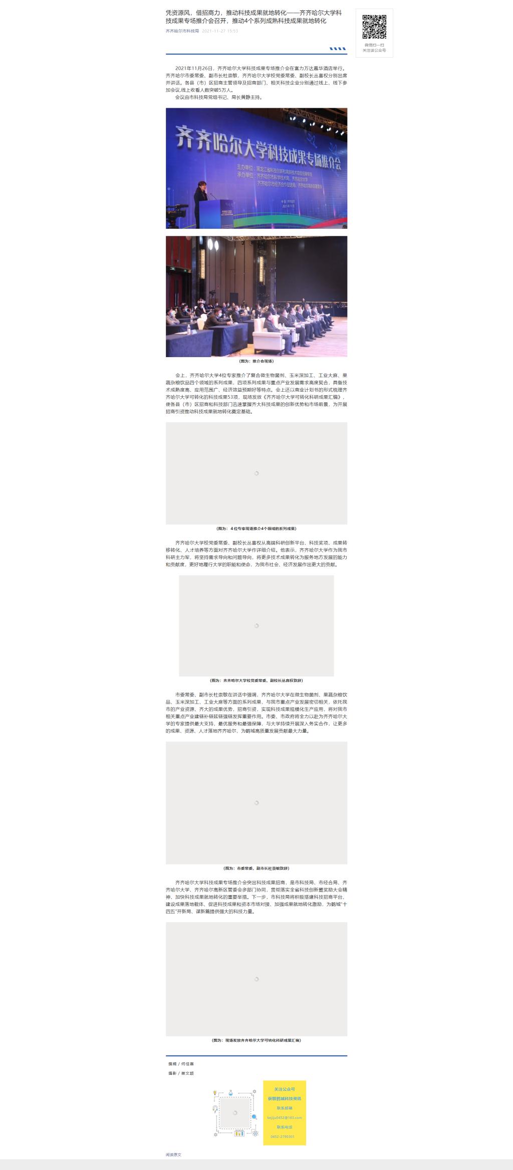 【中国科技网】齐齐哈尔大学抛出四个“科技绣球”吸引投资者