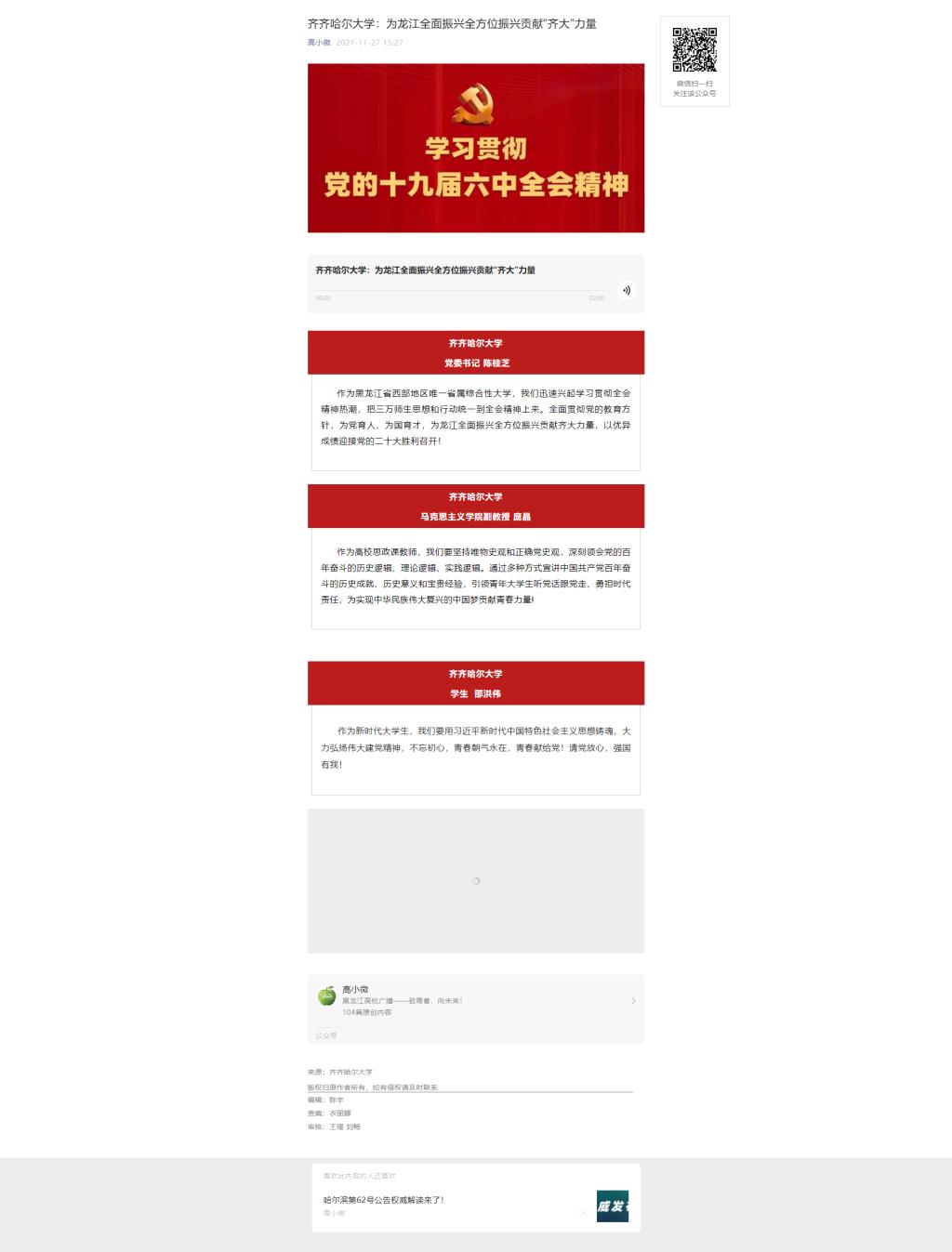 【黑龙江省教育厅】齐齐哈尔大学传达学习党的十九届六中全会精神
