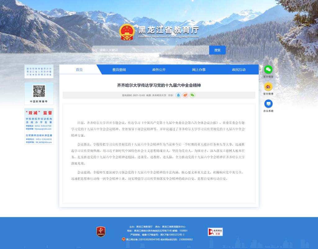 下一条:【黑龙江高校广播】齐齐哈尔大学:为龙江全面振兴全方位振兴贡献“齐大”力量