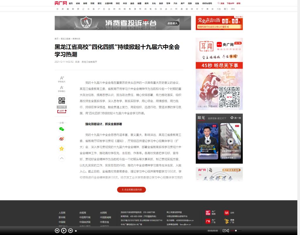 【央广网】黑龙江省高校“四化四抓”持续掀起十九届六中全会学习热潮