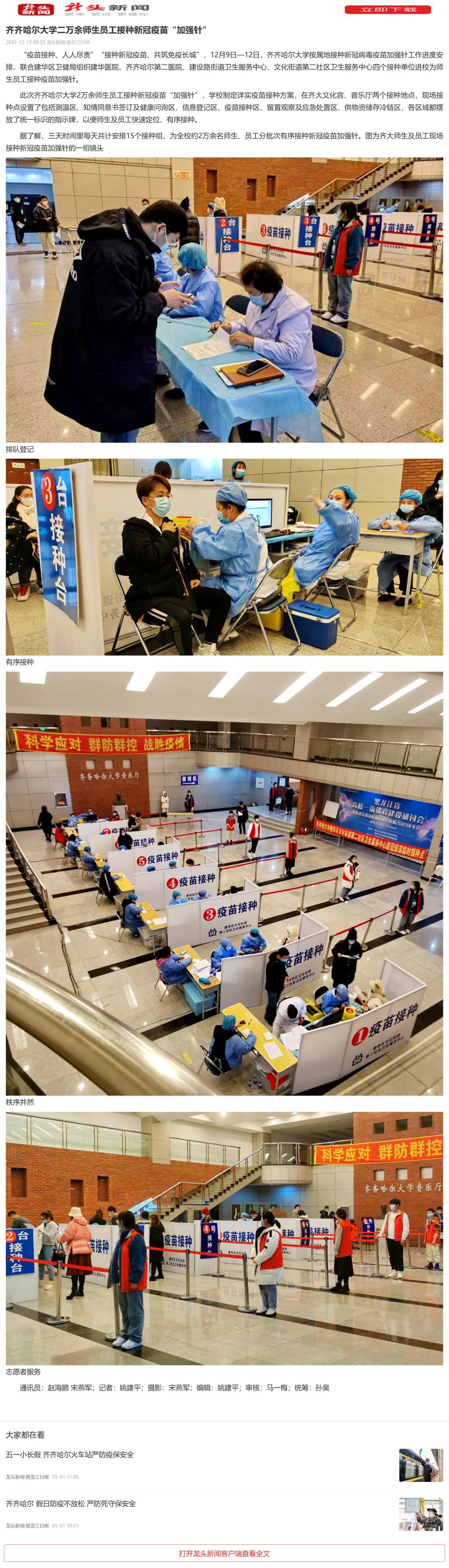 【人民网】齐齐哈尔大学两万余名师生员工接种新冠疫苗“加强针”