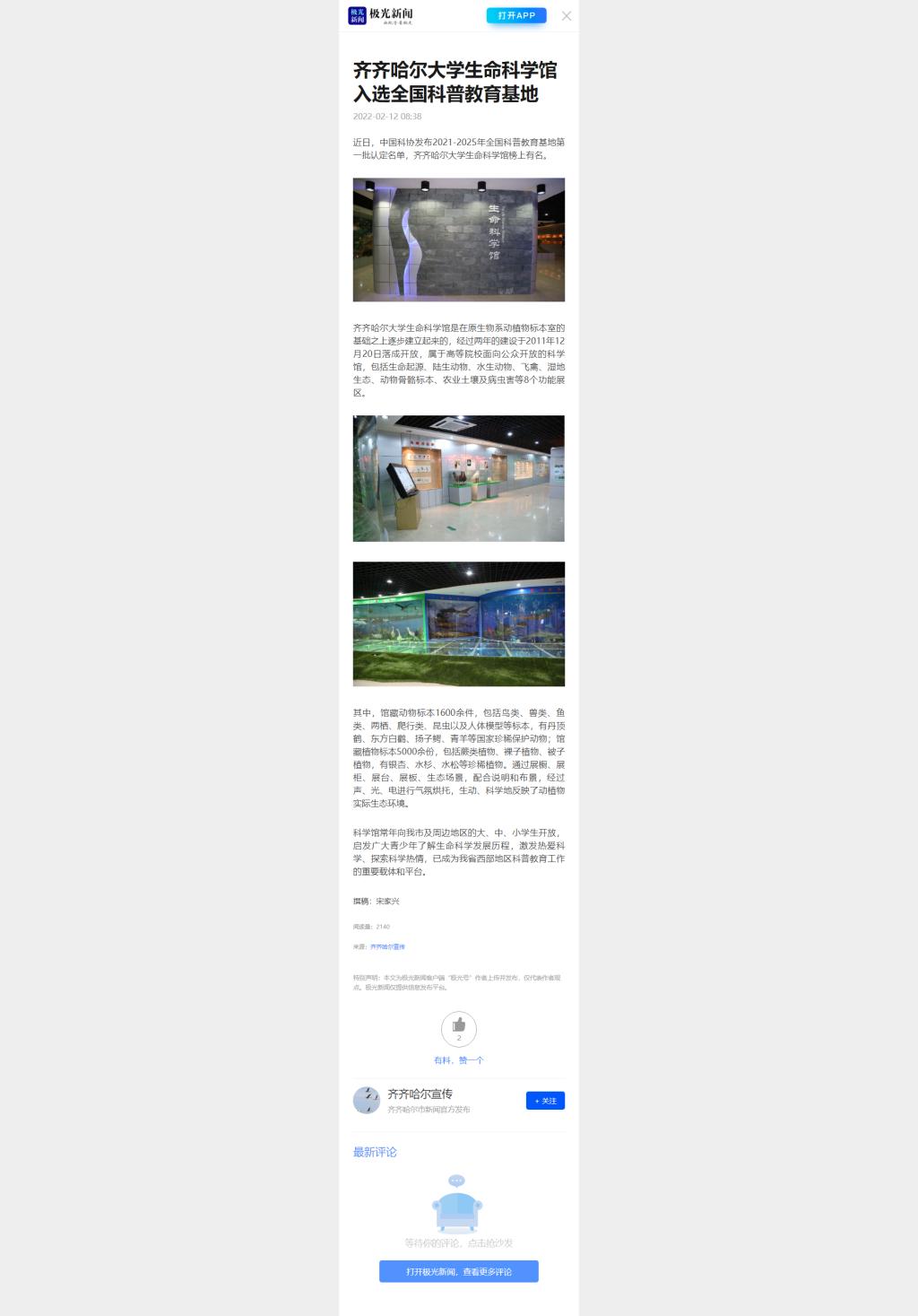 【极光新闻】齐齐哈尔大学生命科学馆入选全国科普教育基地