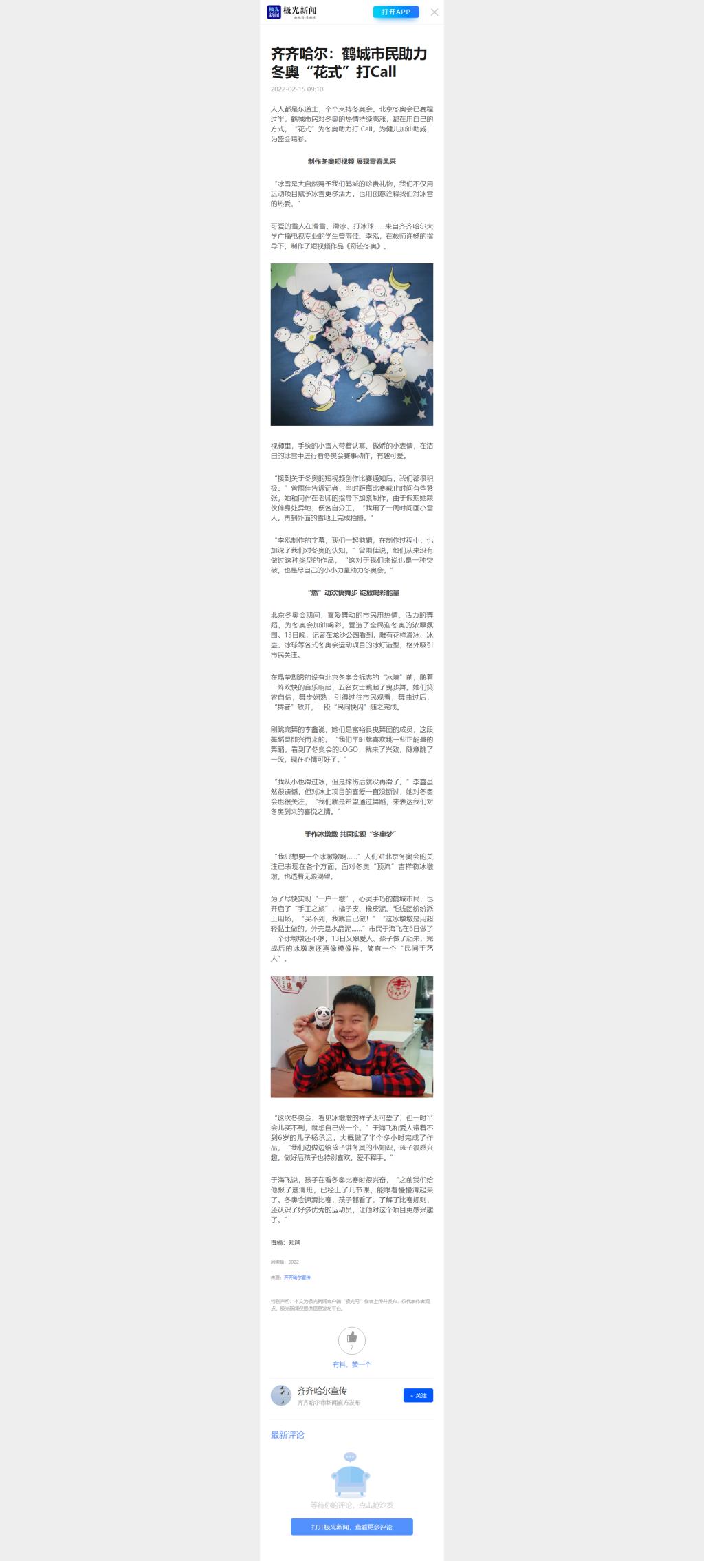 【鹤城晚报】为冬奥助力 市民“花式”打call