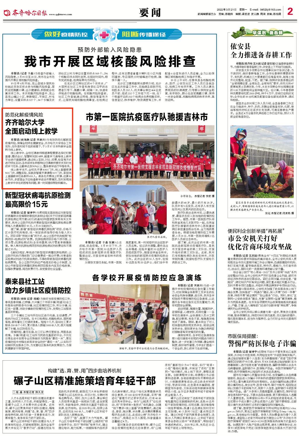 【齐齐哈尔日报】防范化解疫情风险,齐齐哈尔大学全面启动线上教学