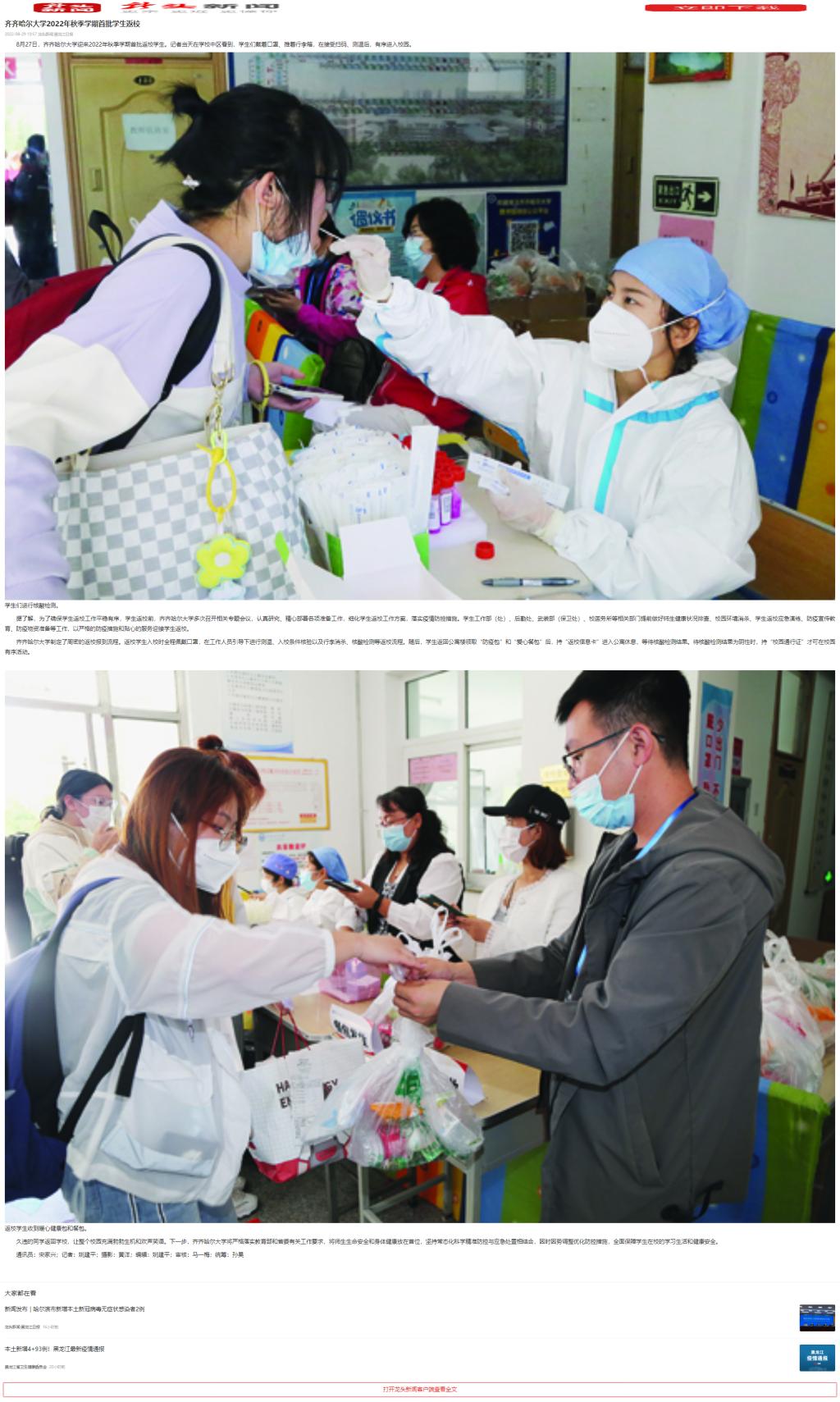 【龙头新闻】齐齐哈尔大学2022年秋季学期首批学生返校