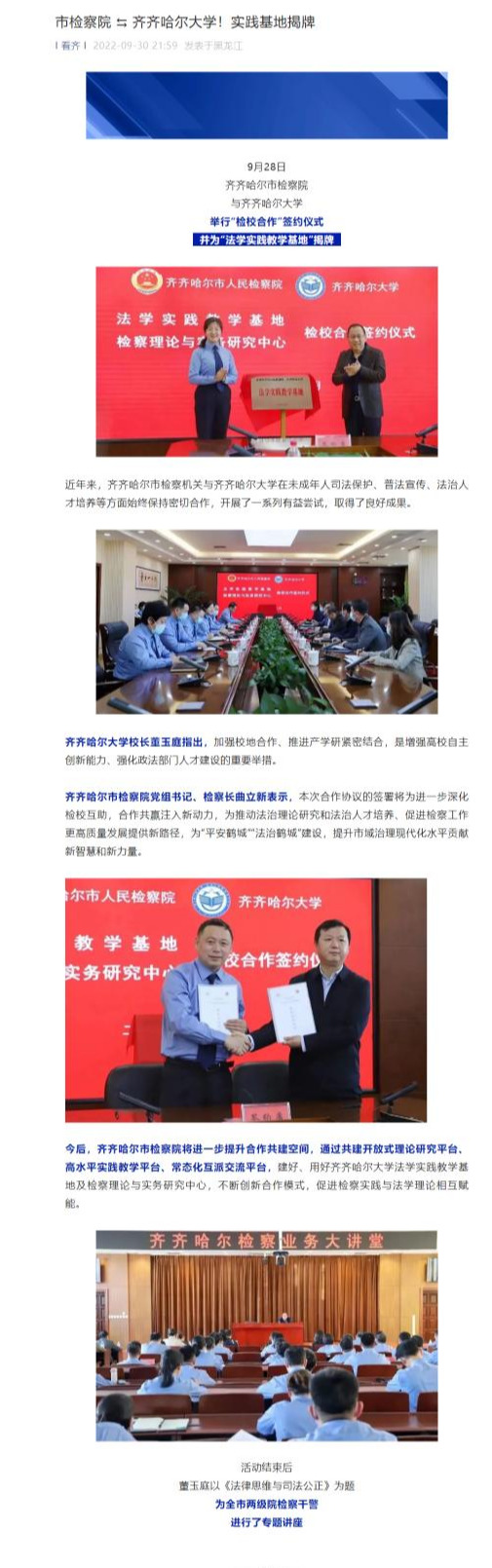【看齐】市检察院 ⇆ 齐齐哈尔大学!实践基地揭牌