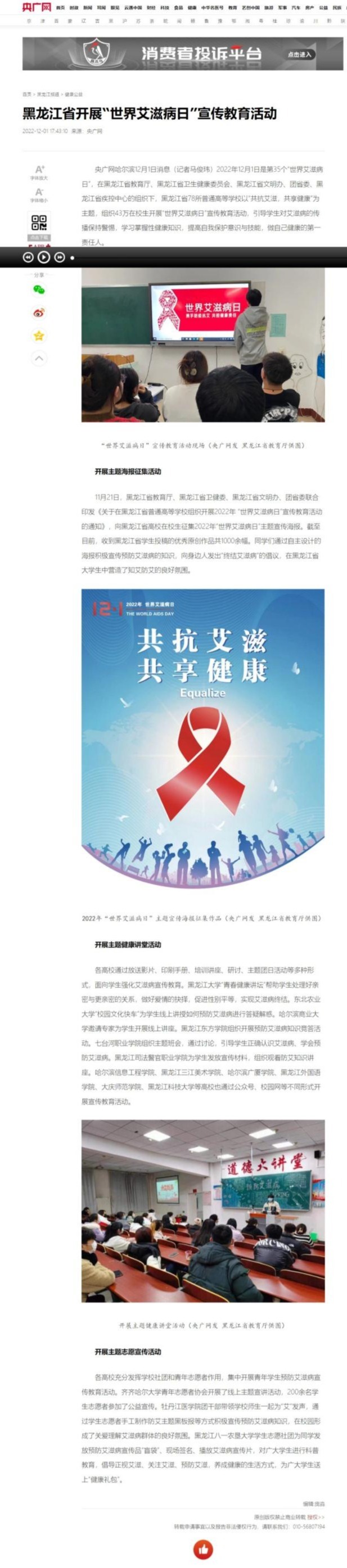 【央广网】黑龙江省开展“世界艾滋病日”宣传教育活动