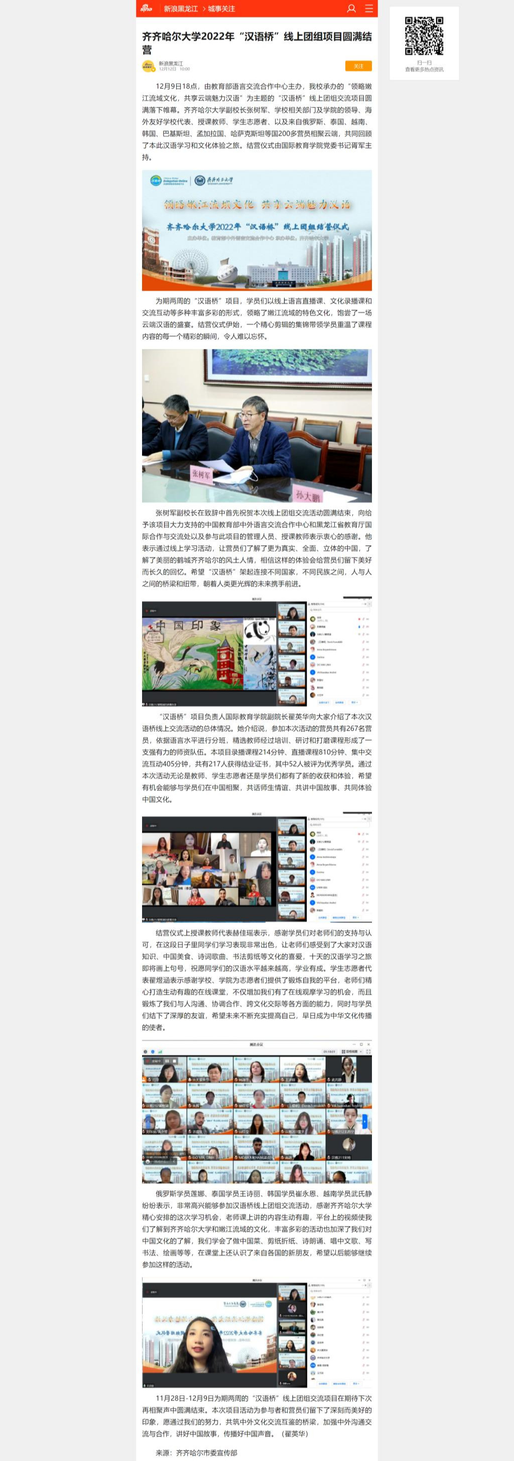 【新浪网】齐齐哈尔大学2022年“汉语桥”线上团组项目圆满结营