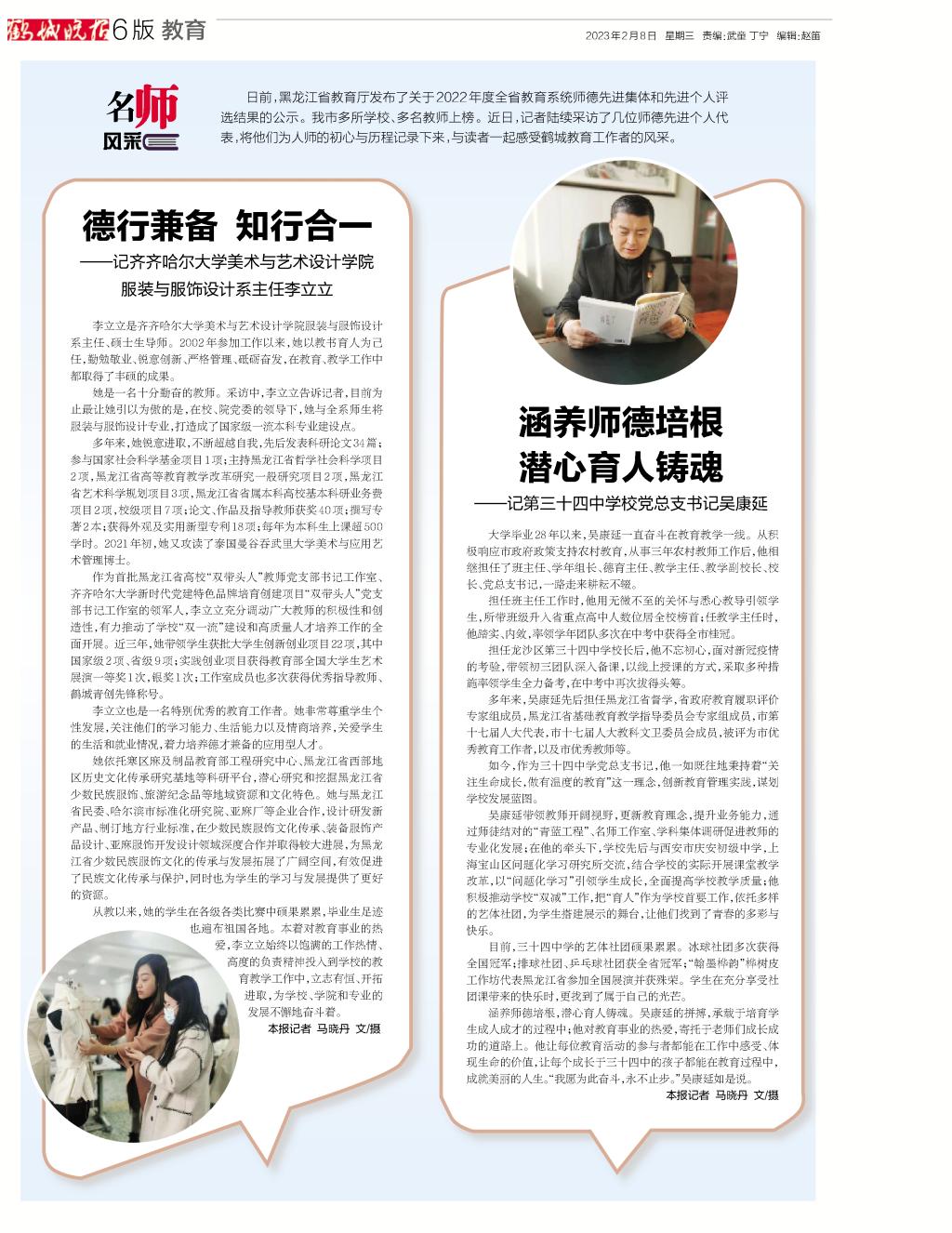 【鹤城晚报】德行兼备 知行合一--记齐齐哈尔大学美术与艺术设计学院服装与服装设计系主任李立立