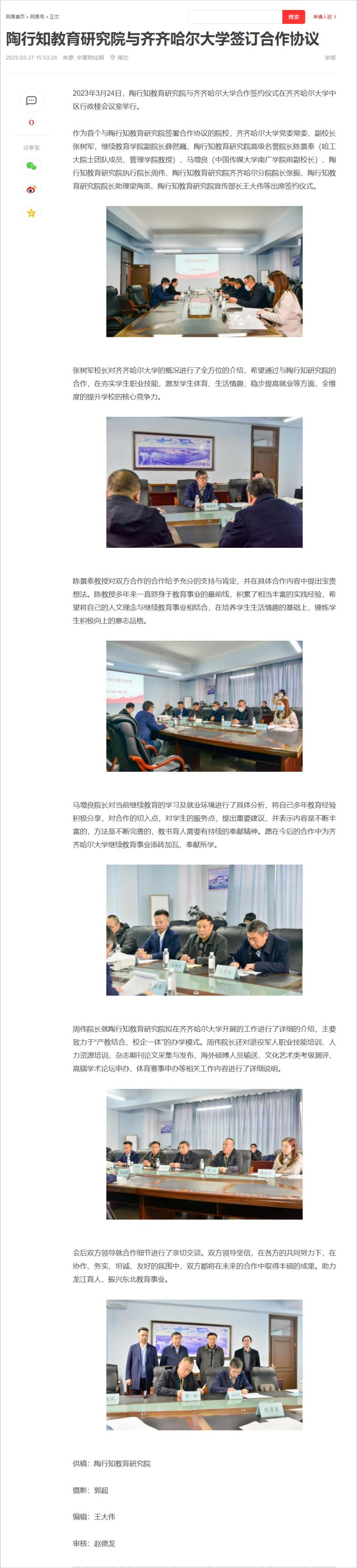 【网易】陶行知教育研究院与齐齐哈尔大学签订合作协议
