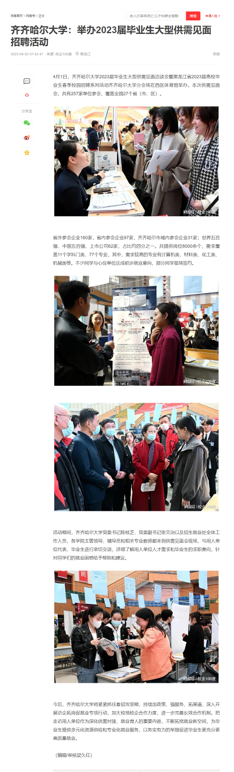 【网易号】齐齐哈尔大学:举办2023届毕业生大型供需见面招聘活动