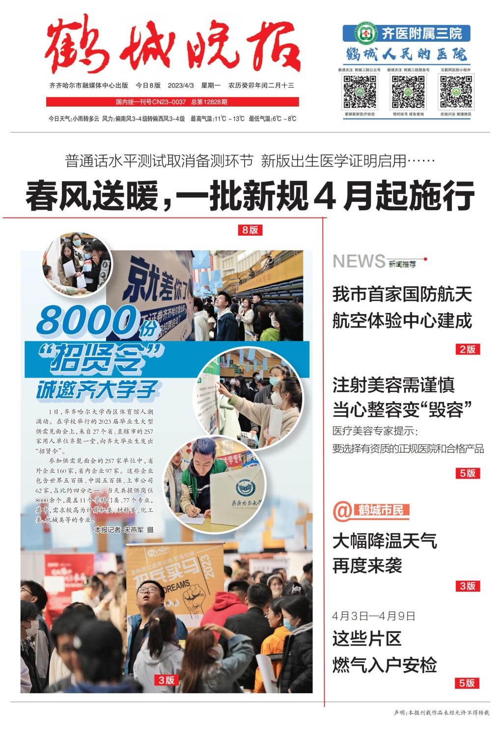 上一条:【鹤城晚报】8000余个岗位发出“招贤令 齐齐哈尔大学举行2023届毕业生大型供需见面会
