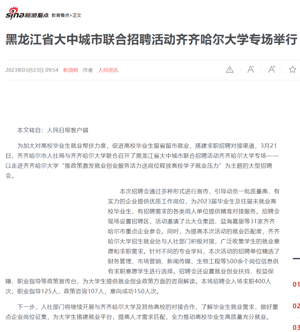 上一条:【人民日报】黑龙江省大中城市联合招聘活动齐齐哈尔大学专场举行