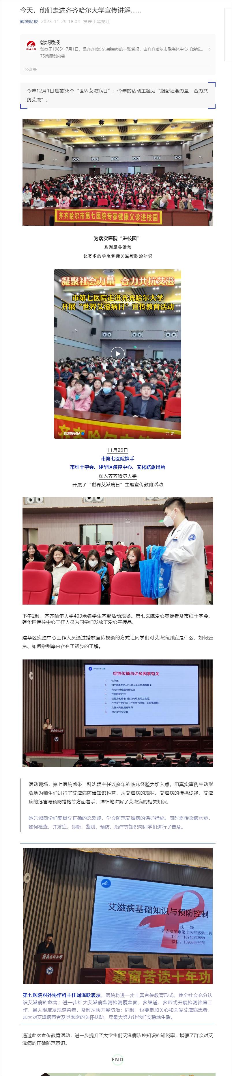 【鹤城晚报】今天,他们走进齐齐哈尔大学宣传讲解……