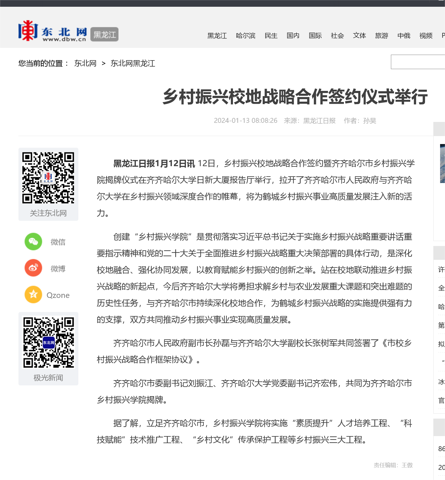 【人民网】齐齐哈尔市人民政府与齐齐哈尔大学举行校地战略合作签约暨揭牌仪式