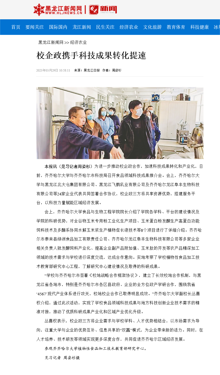 【黑龙江新闻网】校企政携手科技成果转化提速