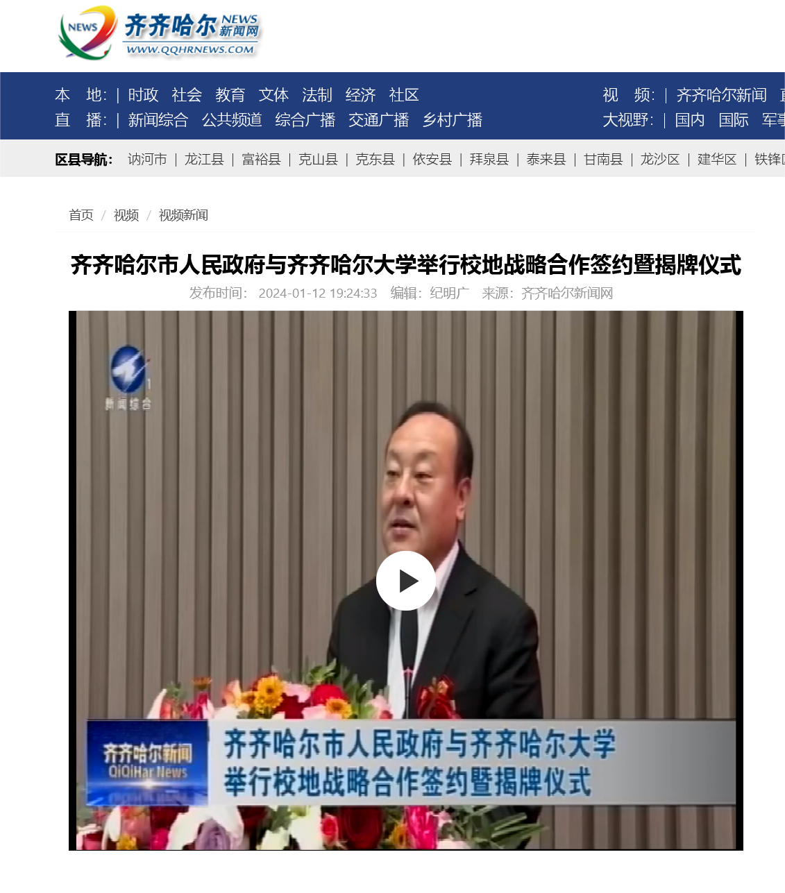 上一条:【黑龙江网】齐齐哈尔大学与齐齐哈尔市人民政府举行校地战略合作签约暨揭牌仪式